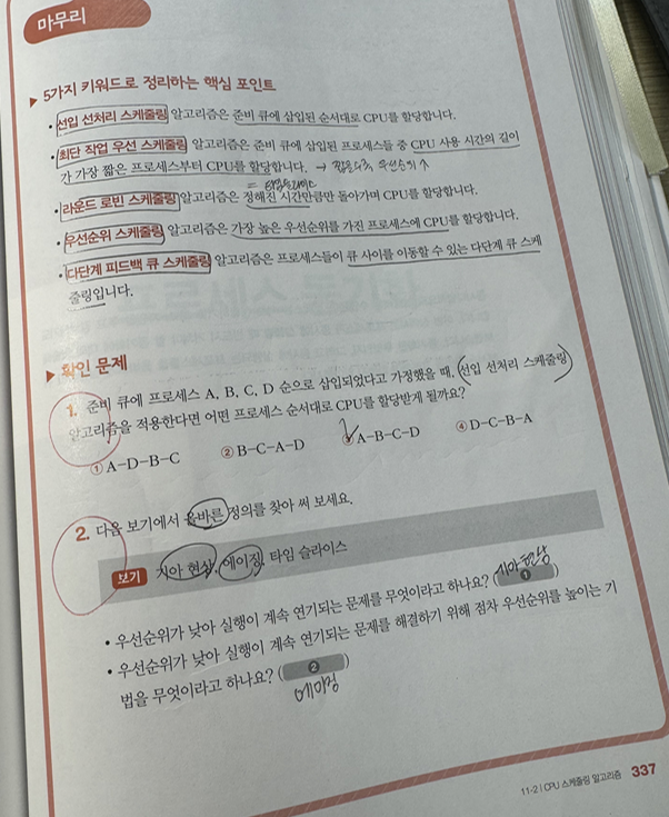 - 에이징 기법 : 대기 시간에 비례하여 우선순위를 업그레이드하는 기법
