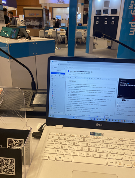 바로노트는 나 같은 대학생을 타겟팅할 수 있는 IoT 제품으로 특이하게 chat gpt를 사용한다고 한다. 녹음 파일이 입력되면, 그 내용을 chat gpt가 요약해 요약본을 사용자에게 제공하는 것. 곧 유료화되는 서비스라는 말에 사용해볼까? 하는 생각이 혹 한다. 덧붙여 여기서 운영하는 제품들 중, 비교적 최근에 개발되어 유료화 전인 서비스가 많았는데, 이런 박람회를 통해 사람들에게 홍보하면 상용화 전 유입되는 사람들이 많아 제품 홍보에 효과적일 것 같았다. 더하여, 박람회에서 제품을 접한 사람들의 반응이 아직 상용화가 되지 않은 제품의 상용화 여부 결정에 기여된다는 말도 들었기에, 이런 박람회 자리가 서로 다른 사람들에게 각각 유의미한 정보를 전달할 수 있음을 몸소 느꼈다.