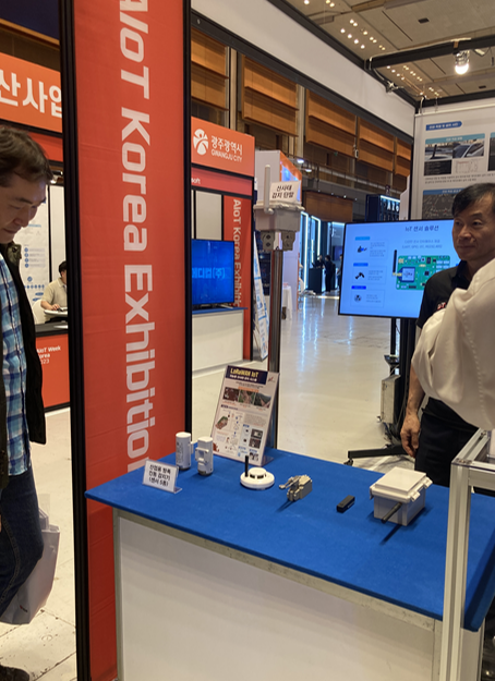산사태를 감지할 수 있는 IoT를 선보이고 있었다. 산사태를 감지하기 위해선 지표 변위 정도와 경사를 감지해야 하기 때문에, x,y,z 축을 가지는 자이로센서와 와이어를 이용해 이를 감지한다. 특히 와이어는 센서의 끝과 끝을 연결해 그 길이에 변화가 일어나면서 지표 변위를 감지할 수 있다. 이러한 시스템을 통해 감지한 정보를 바탕으로 디바이스에 실시간으로 알림이 오도록 설정한 IoT인 것이다. 현재 지자체와의 협력으로 시범 운영을 진행하고 있다고 한다. 더불어 맨홀 뚜껑 열림 감지 및 수위와 가스 측정이 가능한 IoT를 개발하기도 한 기업이다.