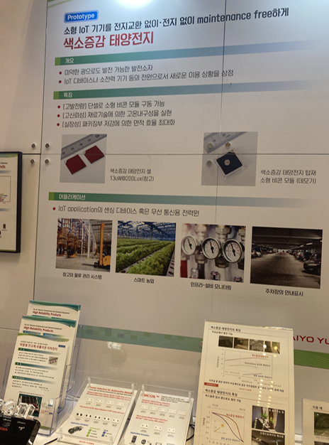 일반적인, 흔히 아는 실리콘 태양전지가 아닌 색소증감 태양전지는, 실내에서 사용하는 빛을 통해 전기에너지를 만들 수 있는 태양전지다. 실내에서 사용하는 빛이 원료가 되기 때문에, 실내에서 실외의 활동을 전기 신호로 전송받고 확인하는데 적합한 전지이자 IoT의 전기공급망이 된다. 또, 흔히 잘 알려진 것처럼, 우리가 아는 실리콘 태양전지의 효율은 매우 낮은데, 이에 비해 색소증감 태양전지는 약 두배 가량 높은 전기에너지를 생성할 수 있어 효율적인 측면에서도 장점을 가진다. 현재 이러한 색소증감 태양전지를 개발하고 있는 기업이 여럿 있다고 한다.