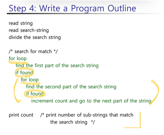 이 문제는 exact match (찾고자하는 search string과 search string을 찾을 대상인 given string을 입력받아 몇 개의 sub-string(search string과 일치하는 given string의 부분)의 갯수를 count해 출력하는) 문제이다. 여기까지는 for문을 중첩으로 한번 사용하고 if 조건문을 이용해 풀 수 있었는데 문제는 다음이었다.