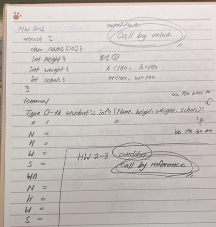 바로 call by value 대 call by reference! 2-2는 call by value이기 때문에 조금 더 편안한 마음으로 풀었다. (아직 포인터에 대해 조금은 어려움을 느끼고 있는 나..얼른 극복하자)